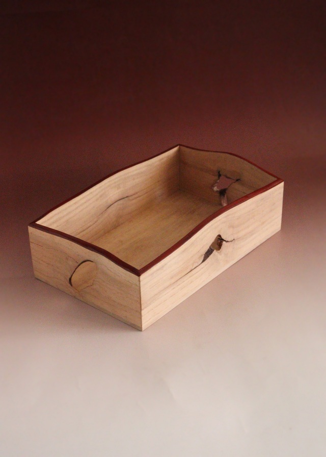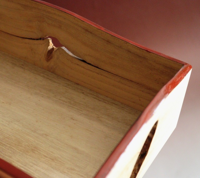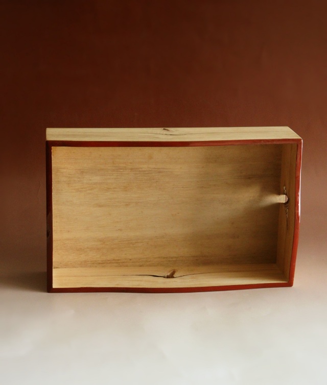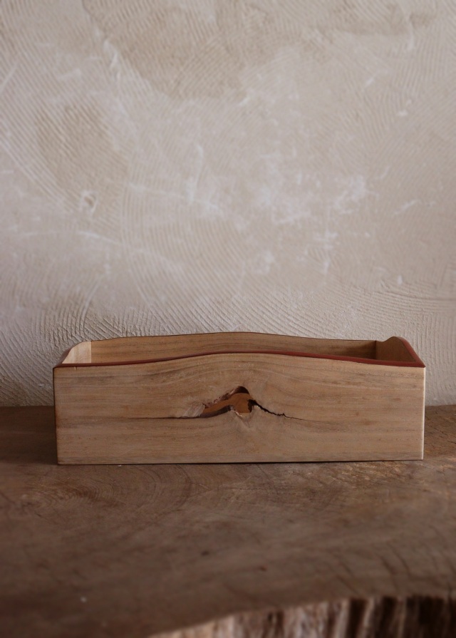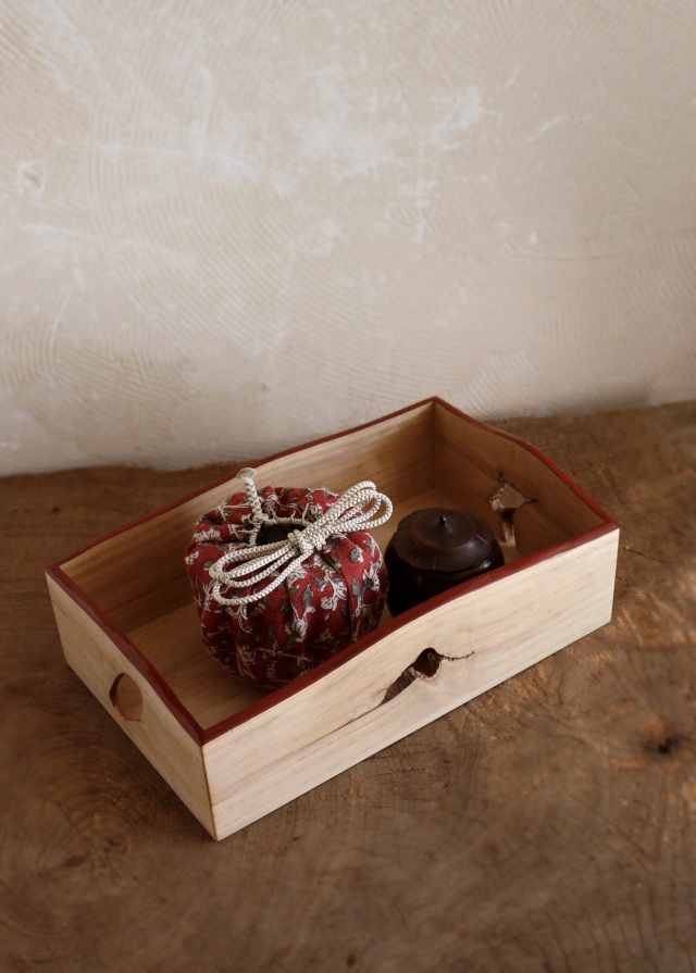 枯れた節目が遠山を描く景色にも見え濃い溜色の漆を縁に回した桐材の煙草盆です。煙草ではありますが茶器を収納する箱としても楽しめます。 -福井誠山- 1910年香川県高松市生まれ 磯井如真に師事 日本芸術院美術展覧会 日本伝統工芸展 日本漆芸院美術展等、数々入選 サイズ:295mm×185mm×高さ90mm 。 経年経過の風合い小傷がございます。栞付き。※箱はありません。 ※ブラウザの環境により色が違って見える場合もございます。箱のみのお値段です。