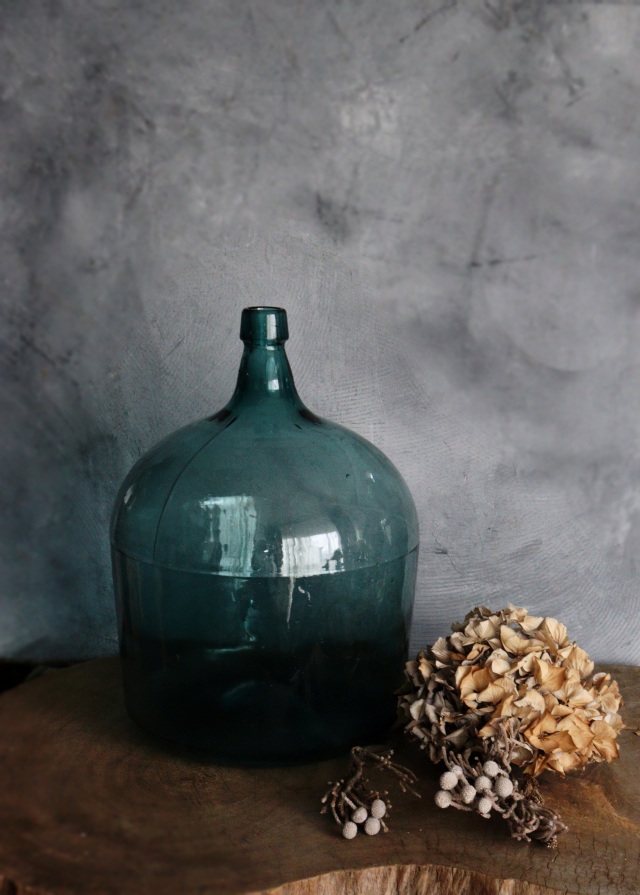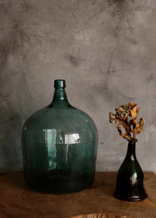 大きなデミジョンボトルです。デミジョンボトルとはお酒を運ぶの際に用いられた瓶のことで、インテリアに人気のアイテムです。気泡や歪みが優しい風合いで大きさもあるので存在感のあるガラス瓶でお部屋を素敵に演出してくれます。経年経過の擦れや風合い汚れなどございますが古いものがお好きな方におすすめな一点です。 サイズ:直径約320mm×高さ440mm 口径直径約32mm(内寸)