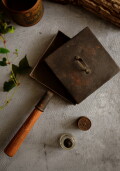 アウトドアにも人気な銅板の卵焼き器フライパンと塩コショウ入れと小瓶セットです。インテリアにも飾って楽しめるアイテムです。味わいの良い三点がセットになっています。古道具のお好きな方におすすめです。 卵焼き器フライパンは味わいが良く蓋が取れます。年代の汚れがあります。 アンティークの塩コショウ調味料入れはとても小さくてかわいいサイズです。小さなつまみで穴を移動します、詰め替えの際は蓋を取ります。 小瓶は小さいながらも指先から滑らないように側面に溝があります。 気泡と歪みの味わいがとてもいい瓶です。 3点は時代経過による傷みや汚れがございます。実際にお使い頂く場合は古いものであることをご理解、ご了承の上ご使用くださませ。 三点セットお値段です。その他のものは含まれません。