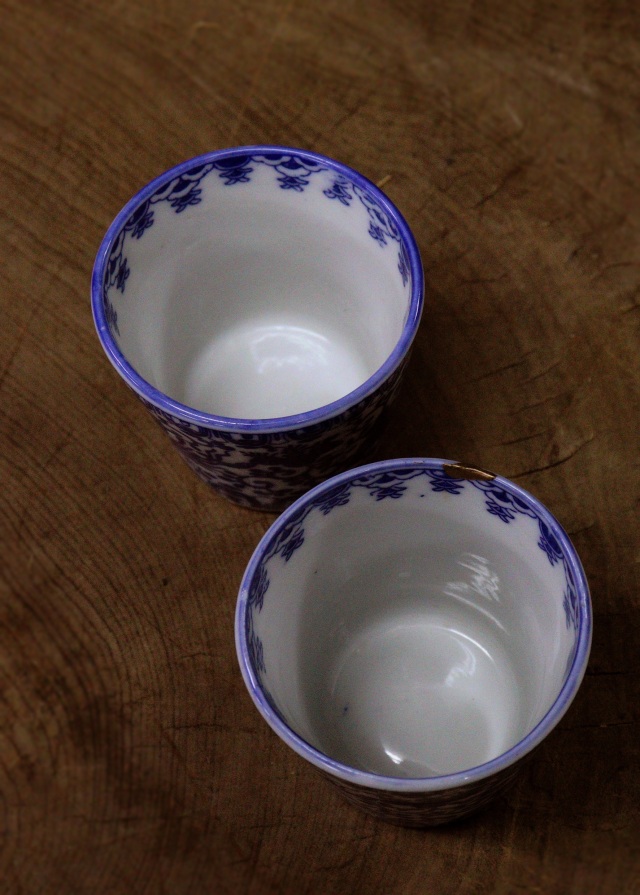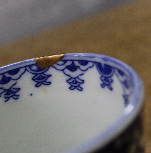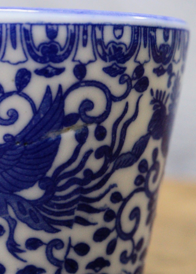 | 製品名: | 染付印判蕎麦猪口 桐菊唐草鳳凰紋 ソバ猪口 2客 金継 |
