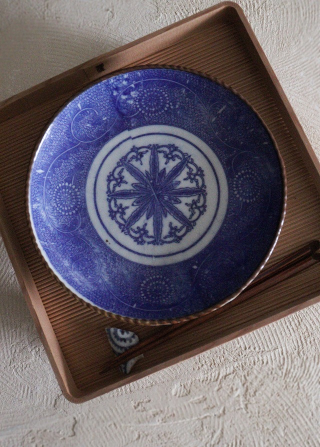 | 製品名: | 染付印判菊唐草紋皿 24cm イゲ皿 ワンプレート 飾り皿 1枚 |