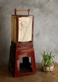 春慶塗の行灯で上と下で用途に合わせ使用できる構造で、 上段をスライドするとはずれ持ち運びができたり高さを低くして使用できるよう機能的な造りになっています。下段のモダンなデザインは大正モダンを象徴するデザインではないでしょうか。 行灯に描かれた高砂の図は水谷百碩(みずたにひゃくせき)の作品です。水谷百碩は1868年(明治元年)~1928年(昭和13年)の画家で名古屋で活躍し、服部雲仙に師事、その後磯部百鱗の門下となりました。 経年経過の風合い、色むらや傷、漆剥がれ絵に破れがございます。LED照明や蝋燭など使用し明かりを灯してはいかがでしょうか。サイズ:235×235×高さ600mm(665mm持ち手の上まで) 上部サイズ:190×190×高さ330mm(390mm持ち手の上まで) 。大正時代。