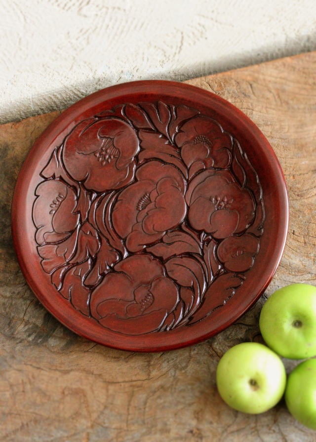 やわらかなデザインの鎌倉彫丸皿(菓子器)です。日本を代表する工芸品の一つとされる鎌倉彫作品です。菓子器やお盆、又は飾られても良いと思います。未使用ですが長期保管品となりますので経年の多少の風合いはございます。箱はありません。サイズ:直径240mm厚み50mm。