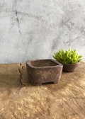 < アンティークサムズコレクション姉妹店 古舫庵コレクション>豆盆栽鉢 万古焼 春山作 小さな盆栽 盆栽鉢。万古焼の笹岡春山作の盆栽鉢です。豆盆栽での小さな世界観の表現に鉢は大変重要なアイテムです。時を経た色合いに詫び錆の雰囲気です。経年の風合いが有ります。本名: 笹岡巳之吉(ささおかみのきち)生年1893年出身地: 三重県四日市市阿倉川。没年1965年三重県四日市市出身の著名な萬古焼の陶芸家で、手捻りの名手として知られています。温かみのある形状と、伝統的な技法を用いた高い完成度が魅力です。サイズ:横80mm縦80mm高さ45mmこちらの商品は姉妹店古舫庵の委託品になりますので発送にお時間を頂く場合があります。